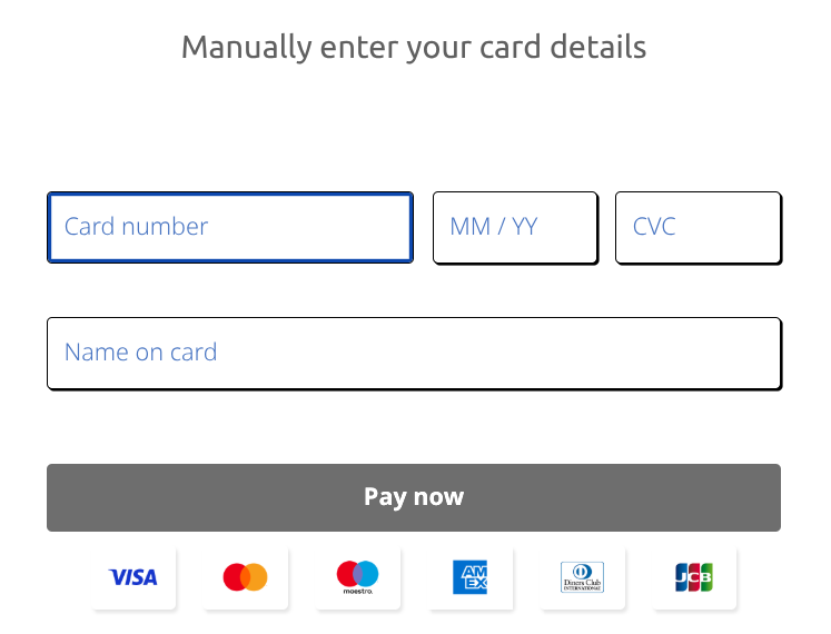 利用できるクレジットカードのブランドはVisa/Master Card/Maestro/American Expres/Diners Club/JCB.。